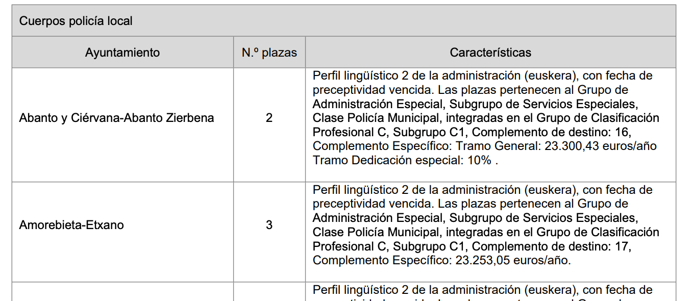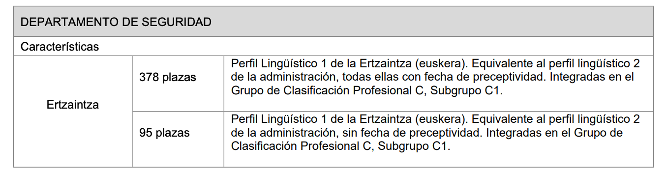 En la convocatoria de la Ertzaintza de 2025 por ejemplo, podemos ver que sí hay plazas "sin fecha de preceptividad vencida":